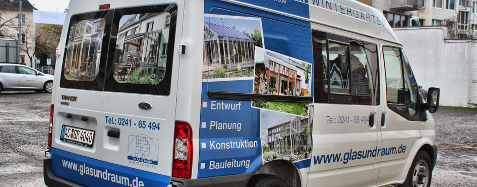 Für das Unternehmen Glas und Raum entwerfen und bekleben wir den Firmenwagen.